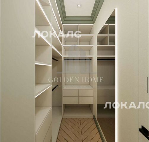 Здесь два санузла: один с ванной, другой с душевой кабиной. Также есть отдельная гардеробная.