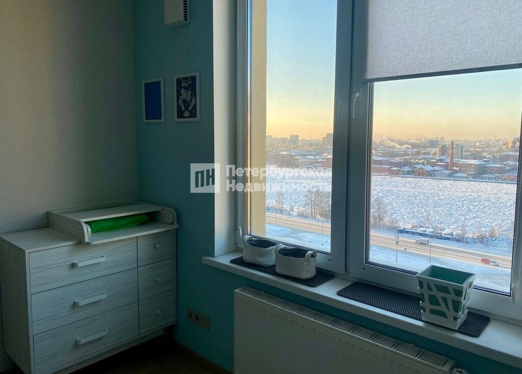 Квартира видовая, смотрит на Неву, Панорамный вид на Неву открывается из окон и из балкона, это усиливает обзор на реку и город, так как квартира расположена на 16 этаже, то нам видны исторические объекты города Санкт-Петербурга и Набережная. Близость к центру ( 7 км. До Невского проспекта) метро и КАД удобно для жителей, ЖК « Цивилизация».