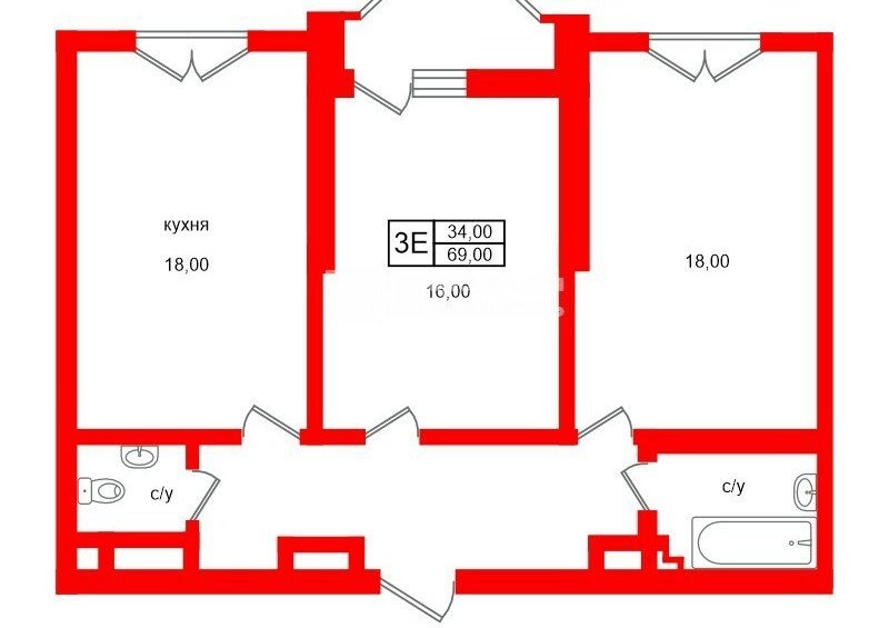 2-комнатная квартира: Санкт-Петербург, улица Дыбенко, 2 (69 м²)