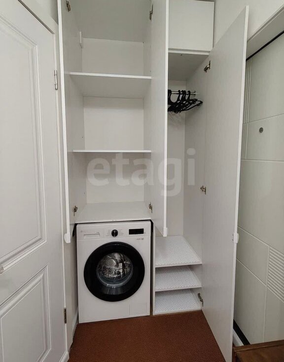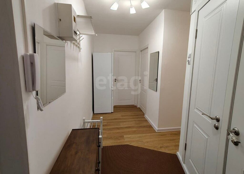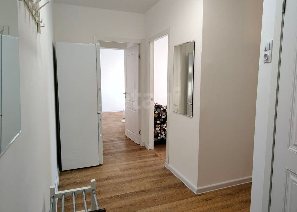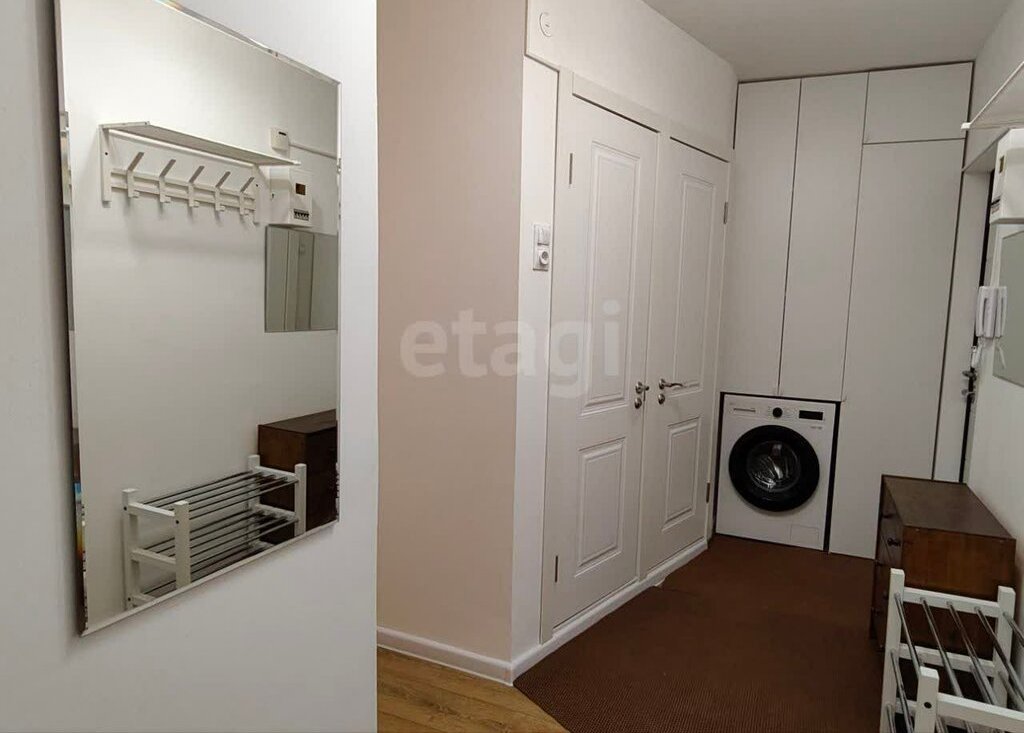 • Прихожая: просторная, с вместительным шкафом для верхней одежды и обуви, а также с новой стиральной машиной и холодильником. Дополнительно есть комод, зеркала, вешалка и обувница.