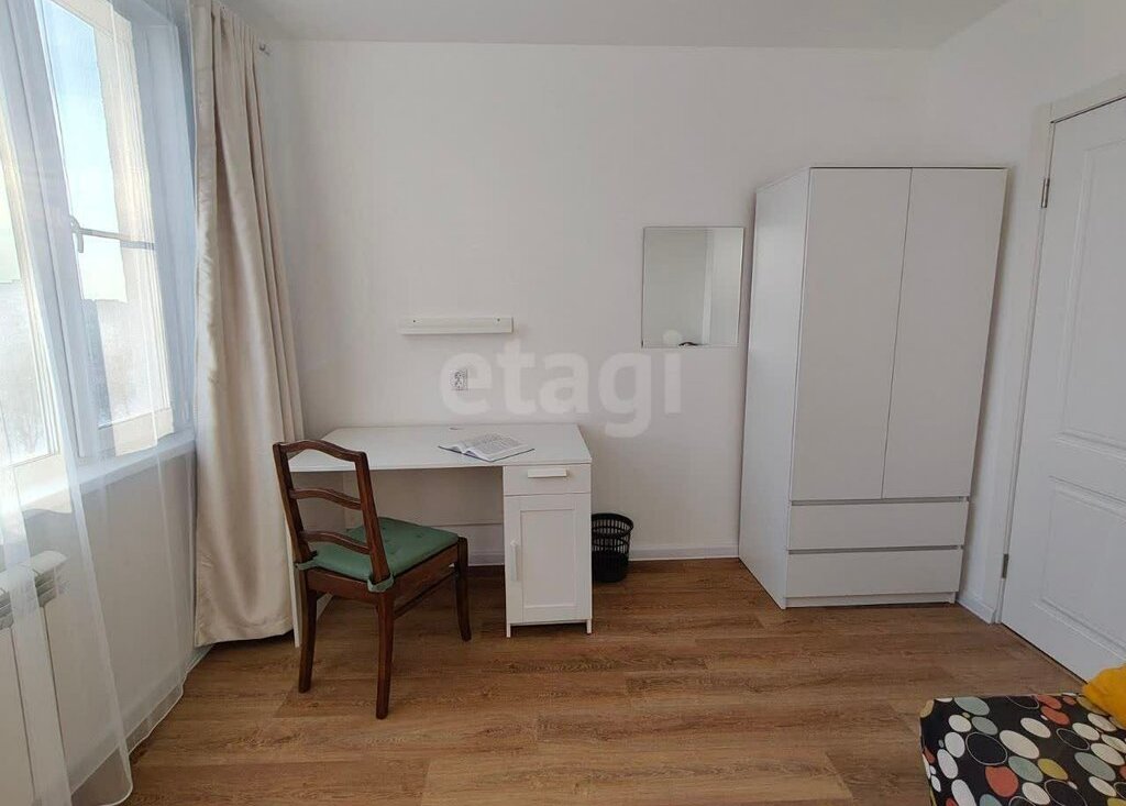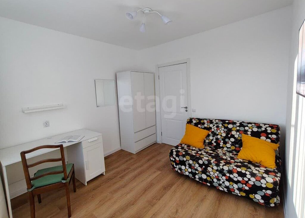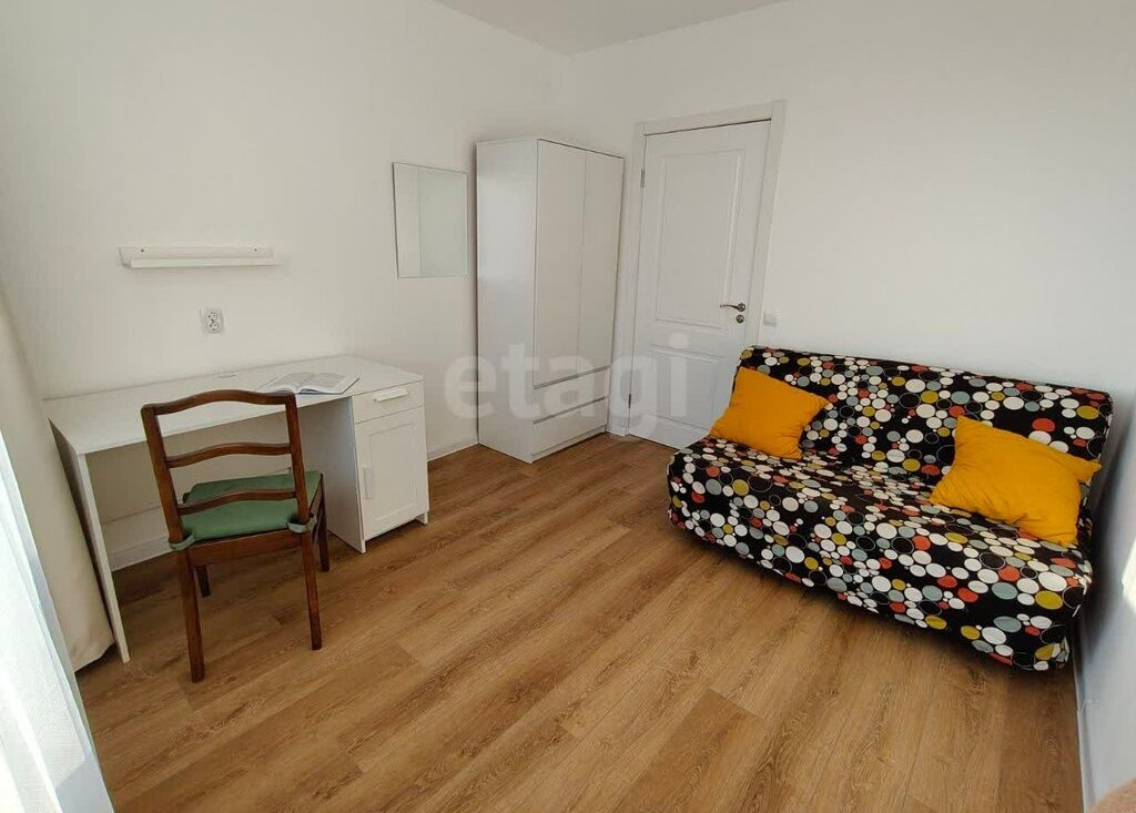 • Маленькая комната: здесь расположен удобный раскладной диван, письменный стол с вместительной тумбой, шкаф для одежды и зеркало.