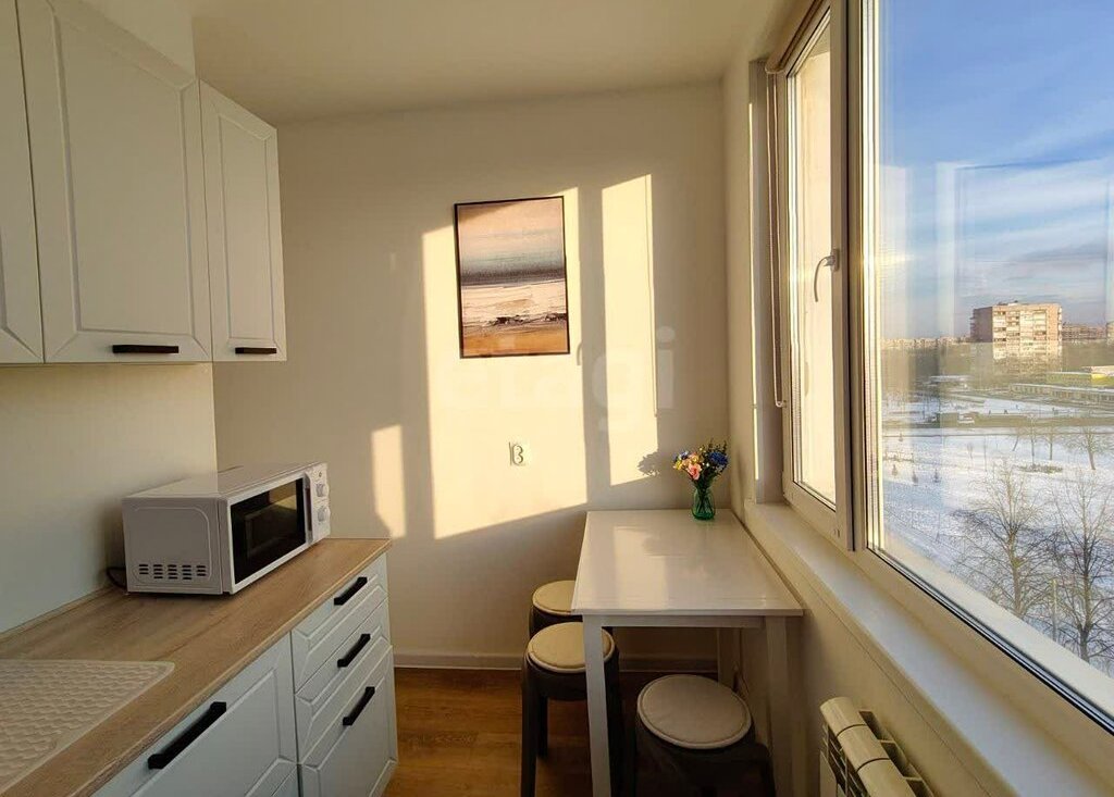 • Кухня: светлая и просторная, оснащена всей необходимой бытовой техникой: холодильником, плитой, вытяжкой, микроволновой печью и чайником.