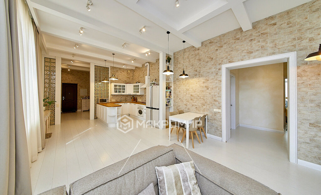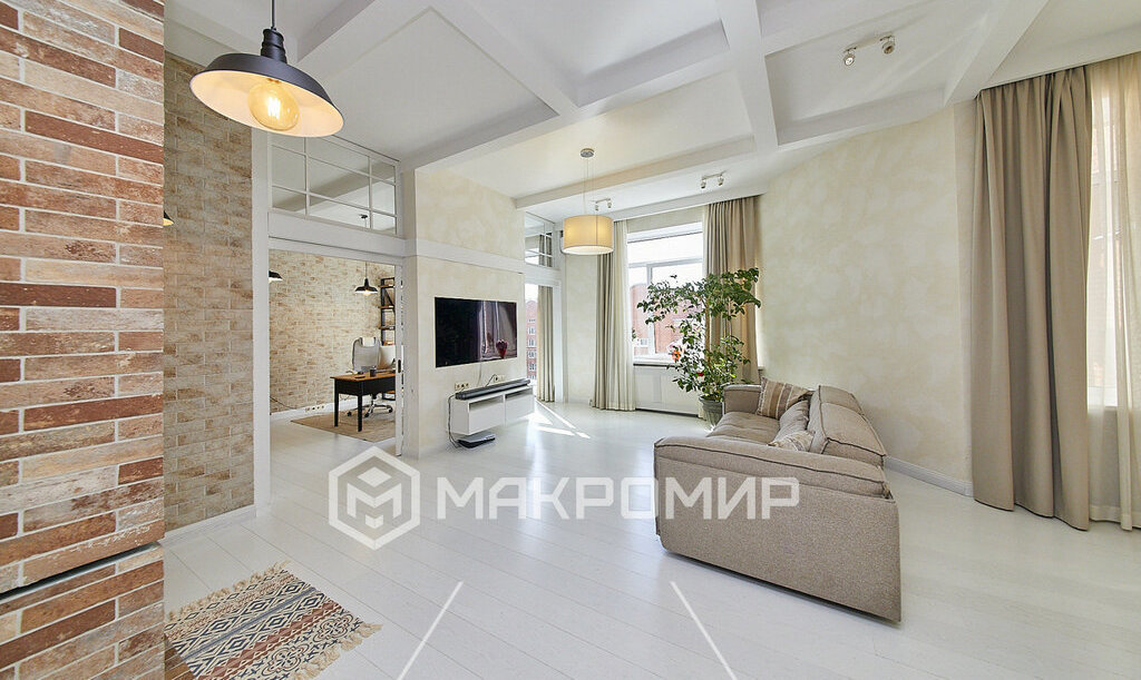 Стильная и очень светлая квартира с высокими потолками 3,52 м в малоэтажном кирпичном доме. Тихий, уютный формат проживания — без плотной застройки и шума.