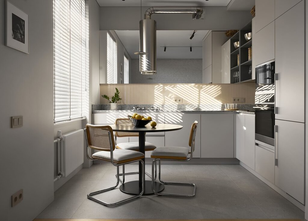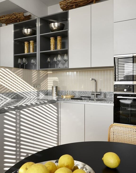посудомоечная машина, духовой шкаф, варочная панель, стиральная и сушильная машины, кофемашина, мебель и предметы интерьера — всё остаётся.