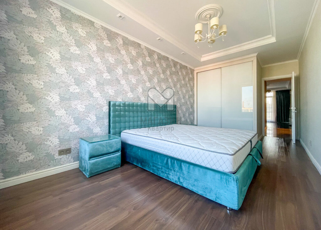 Большая двуспальная кровать с невероятно комфортным матрасом, зеленые прикроватные тумбочки и просторный шкаф-купе сделают ваш сон крепким и восстанавливающим. Здесь не будет хаоса — только порядок и спокойствие, которые дарят настоящий отдых. 🌙🍃