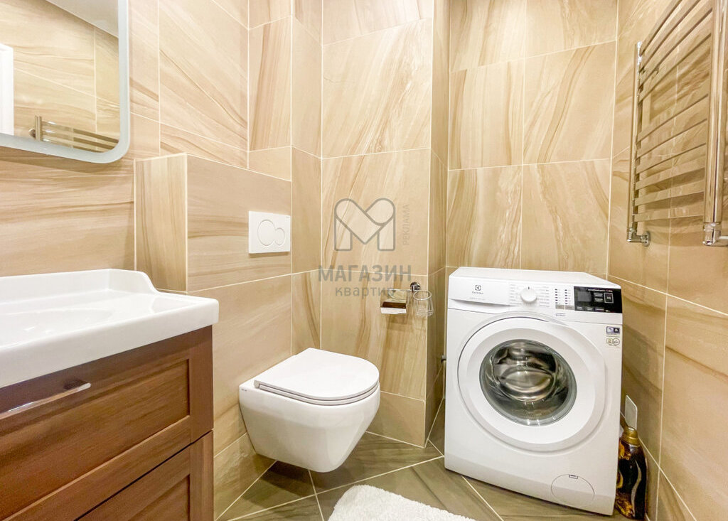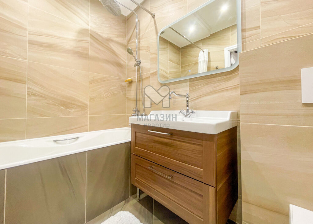 Изящное сочетание качественного кафеля, зеркала с подсветкой и продуманного хранения создают ощущение спа-салона. Высококлассные коммуникации обеспечат комфорт и надежность каждый день. 💧🛁