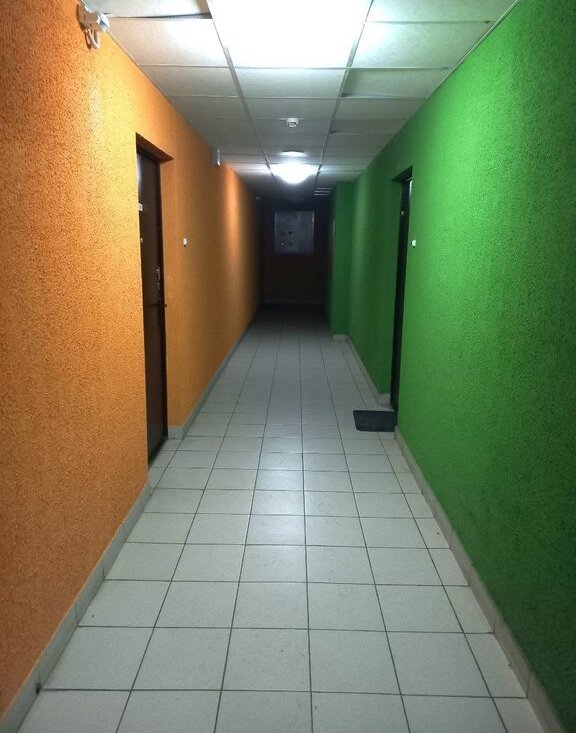 Квартира расположена на 6 из 9 этажей. На площадке, отделённой входной дверью, расположено по 4 квартиры. Общая площадь квартиры составляет 53,8 кв. м.. Жилая площадь - 28,7 кв. м., площадь кухни - 8,3 кв. м., изолированные комнаты 12,7 и 16 кв. м..