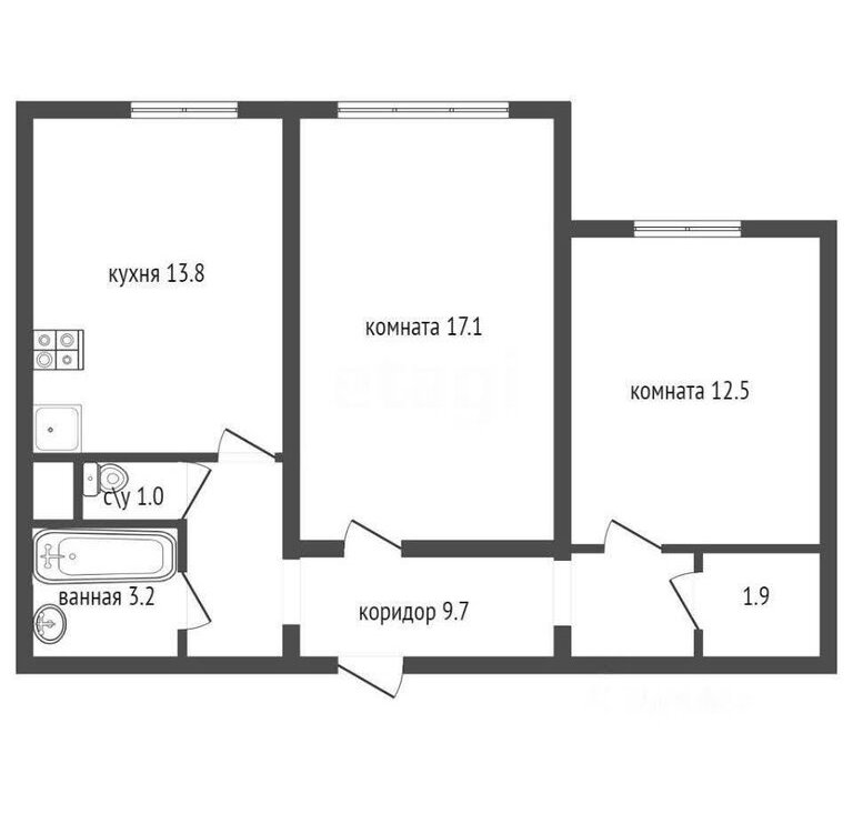 Просторная ванная комната с ванной и отдельный санузел обеспечат комфортное проживание