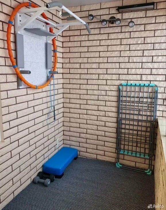 На лоджии мини спортзал: гантели, турник, и др.