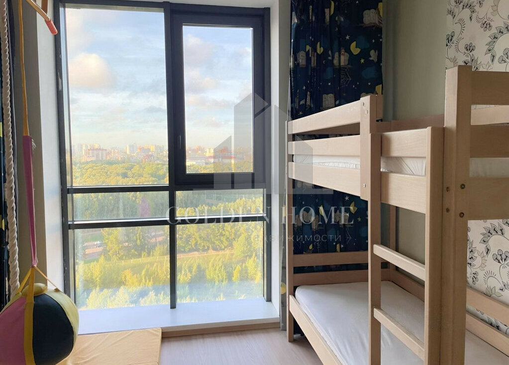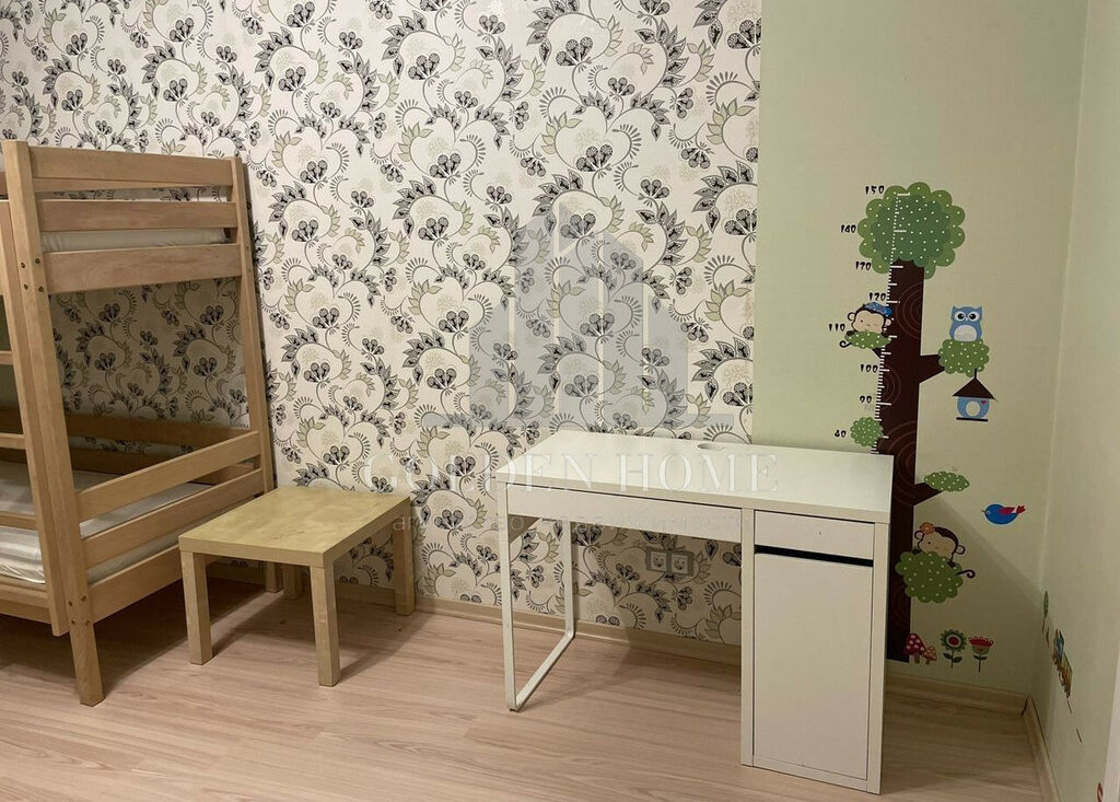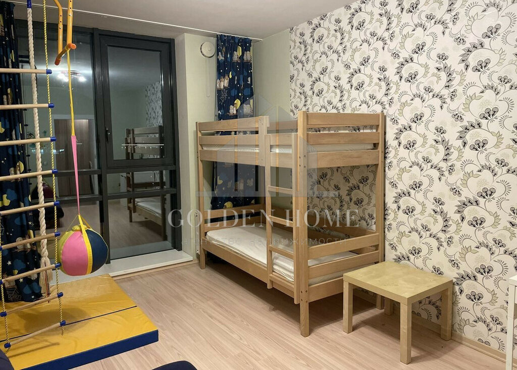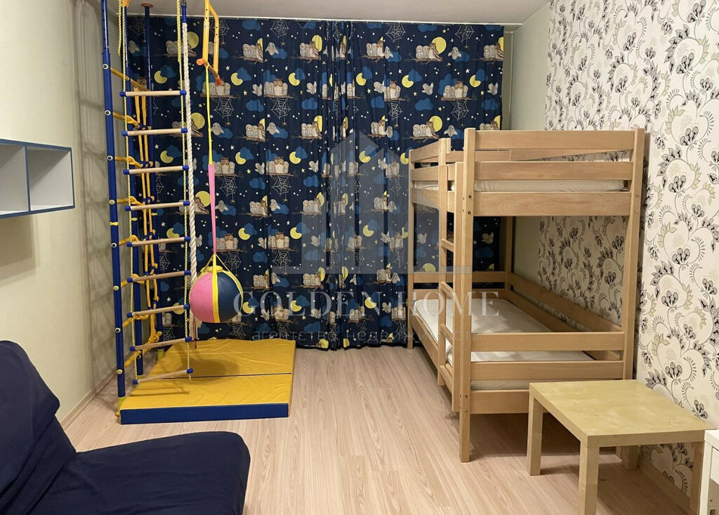 Полностью меблирована и технически оснащена. Кухня укомплектована всей необходимой техникой: посудомоечная машина, духовка, микроволновка, вытяжка, холодильник, плита индукционная. В детской есть даже спортивный уголок. Все для вашего комфорта.