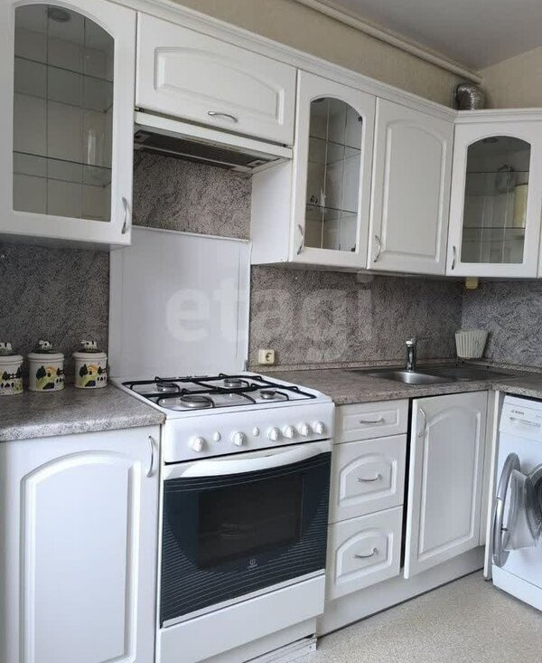 В квартире выполнен косметический ремонт. Из мебели имеются шкафы, вместительный диван в гостиной, двухспальная кровать в спальне. В кухне установлена современная бытовая техника, включая холодильник, плиту и стиральную машину. Ванная комната совмещенная, оснащена ванной, водонагревателем, гигиеническим душем.