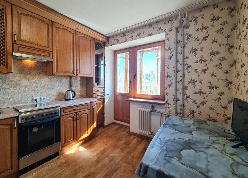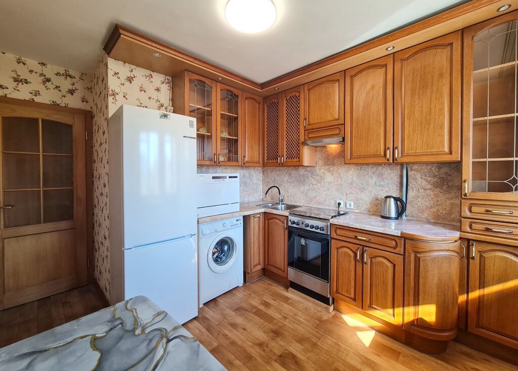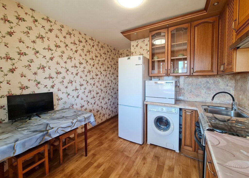Квартира в хорошем состоянии, укомплектована всей необходимой мебелью и бытовой техникой (в том числе посудомоечная машина). В качестве спальных мест используется двуспальная кровать с новым матрасом и раскладывающийся диван. Удобная для жизни планировка - в квартире просторная кухня, две изолированные комнаты, функциональный совмещенный санузел и вместительная прихожая с небольшой кладовой. Имеется застеклённый балкон.