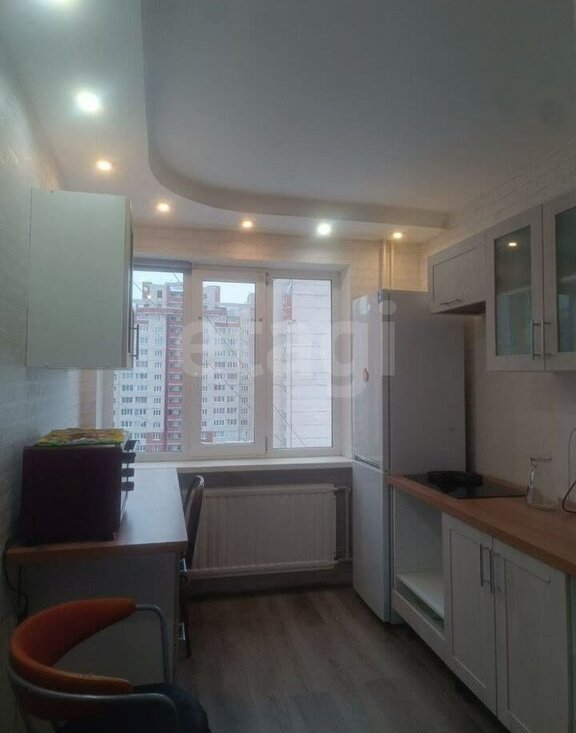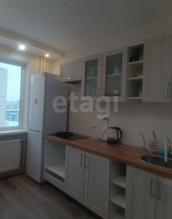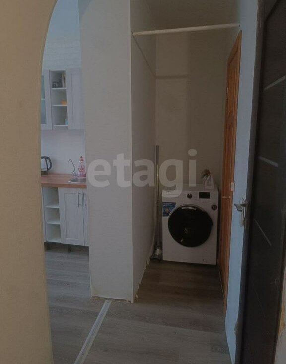 Кухня оборудована необходимой бытовой техникой, включая холодильник и стиральную машину