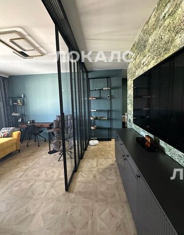 В квартире есть всё необходимое для комфортного проживания. Просторная кухня оборудована современной техникой: холодильник, посудомоечная машина и индукционная варочная, микроволновка. В гостиной установлен большой телевизор. В санузле есть ванна, где можно расслабиться после трудового дня. Планировка продумана до мелочей. Проходную гостиную можно изолировать стеклянной перегородкой или открыть при желании. В спальне есть отдельная гардеробная и зона кабинета. В спальню будет куплена двуспальная новая кровать ( сейчас на фото можно увидеть тахту).