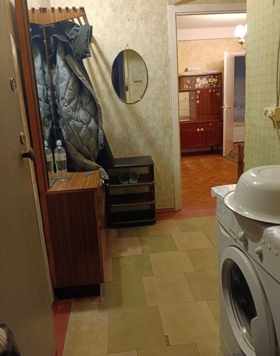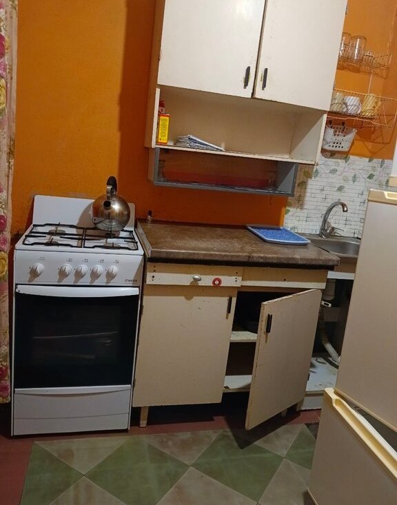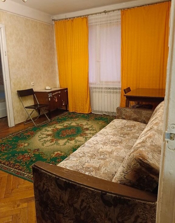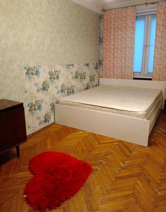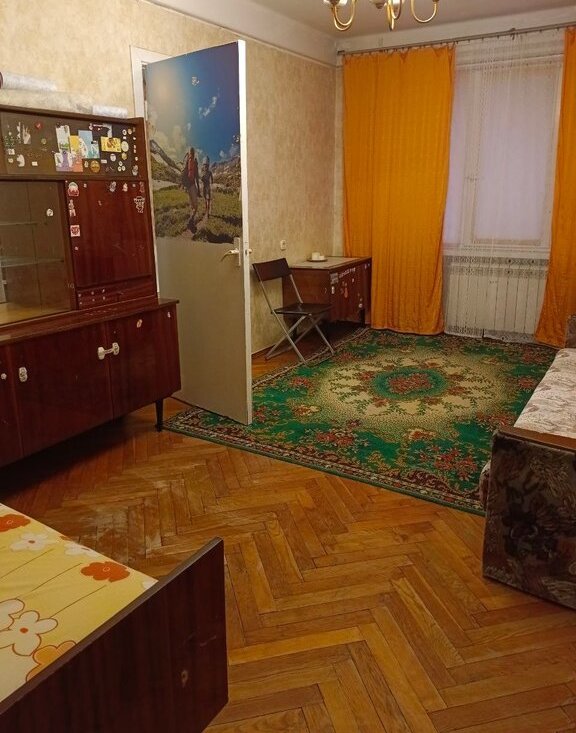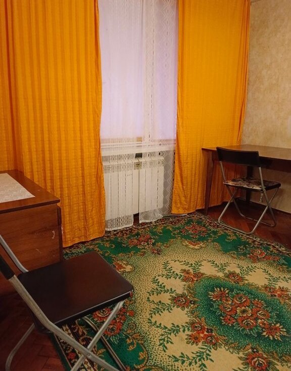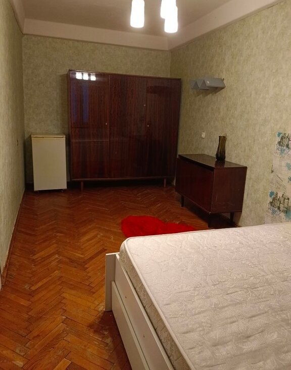 Просторная жилая площадь позволяет комфортно разместиться всей семье. В одной из комнат установлен вместительный шкаф, а также имеется диван и письменный стол. Вторая комната оборудована кроватью и шкафом. В кухне есть холодильник и газовая плита, что обеспечивает удобство приготовления пищи. Стиральная машина в коридоре. Парковка открытая во дворе, что удобно для владельцев автомобилей. Рядом остановка общественного транспорта.