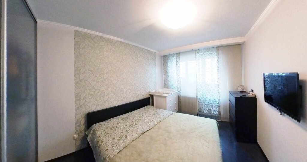 Ваше личное пространство: вторая комната — изолированная спальня для родителей с выходом на лоджию. Большая кровать, шкаф-купе и комоды для хранения, все под рукой. Идеальное место для отдыха после долгого дня.