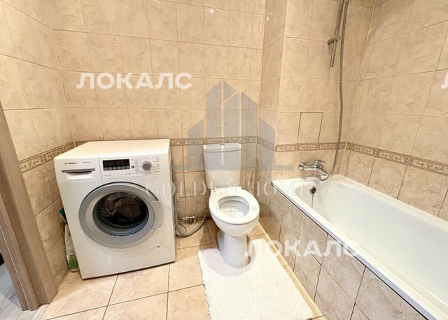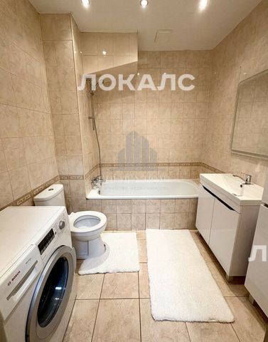 В ванной комнате установлена новая мебель. Имеется стиральная машина Воsсh и полотенцесушитель.