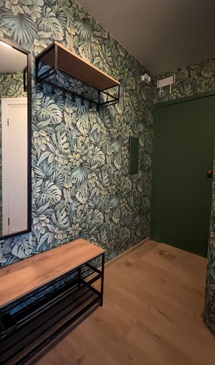В прихожей есть гардеробная для верхней одежды, а также вешалка и зеркало.