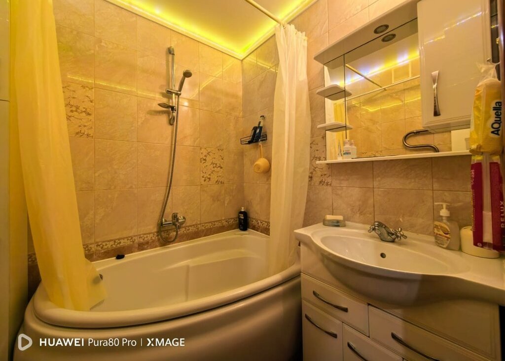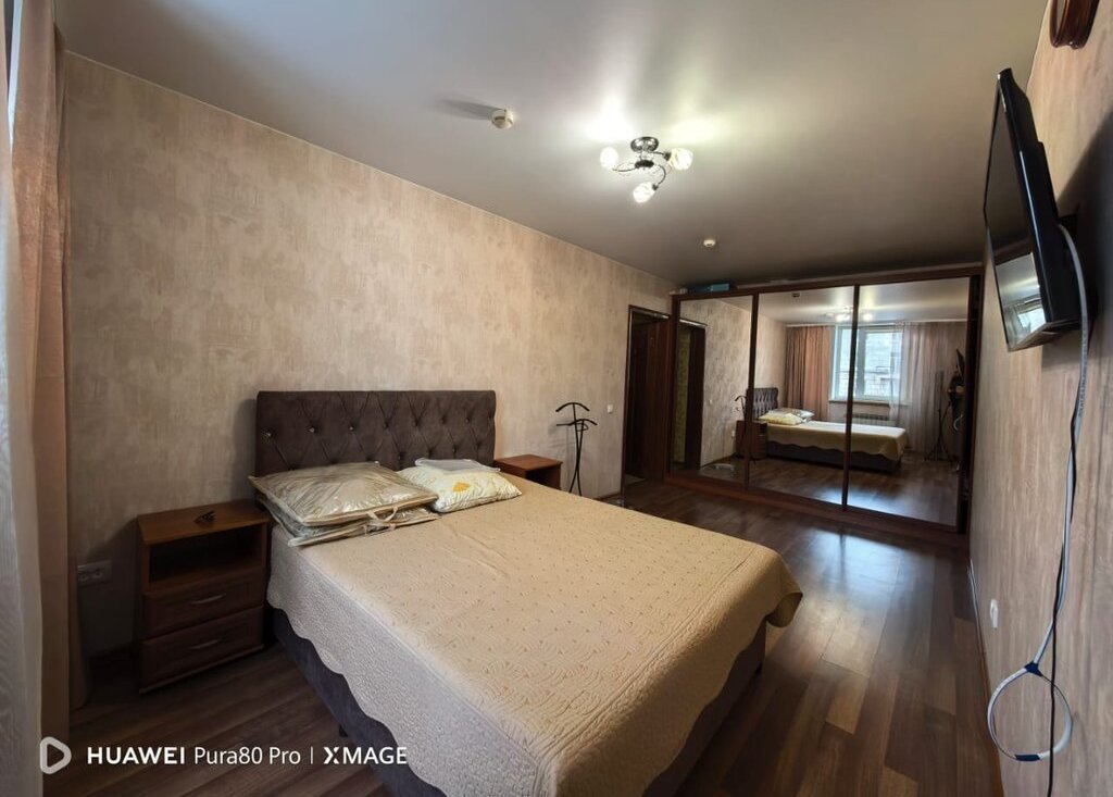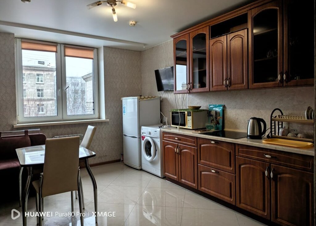 Квартира выполнена в стиле "евроремонт". В жилой зоне площадью 33 кв. м есть вся необходимая мебель для комфортного проживания. Кухня площадью 15 кв. м оснащена мебелью и техникой, включая холодильник, телевизор и стиральную машину. В ванной комнате установлена ванна, что позволит расслабиться после трудного дня.