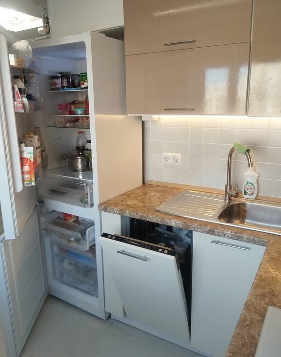 Встроенная техника+ тёплые полы.