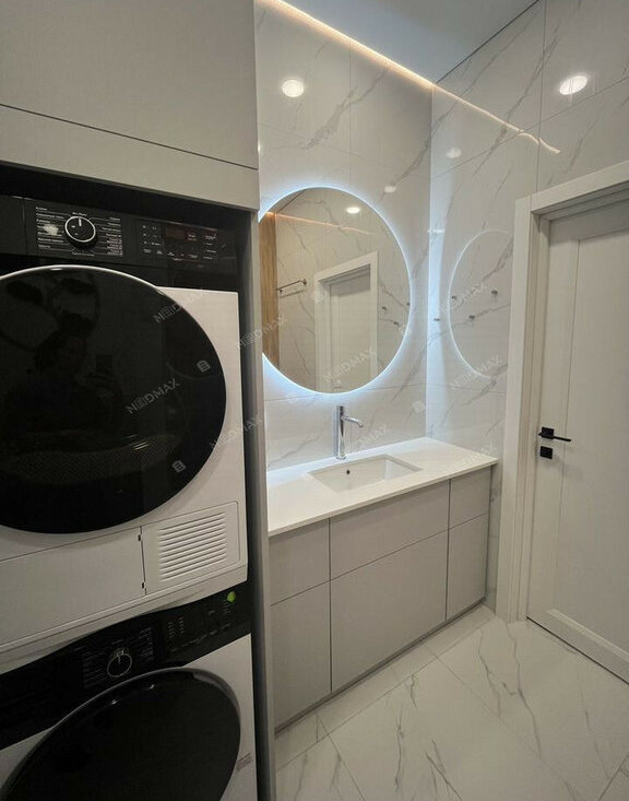 В квартире: просторная кухня-гостиная с дополнительным спальным местом. Кухня оснащена всем необходимым: холодильник, посудомоечная машина, телевизор, кондиционер, духовка с функцией СВЧ, чайник, пылесос, посуда.изолированная спальня. Кровать с ортопедическим матрасом, вместительный шкаф и телевизор.отдельная гардеробная комната.в санузле имеется как стиральная так и сушильная машина.оборудовано рабочее место для большего комфорта.зонированы зоны освещения.