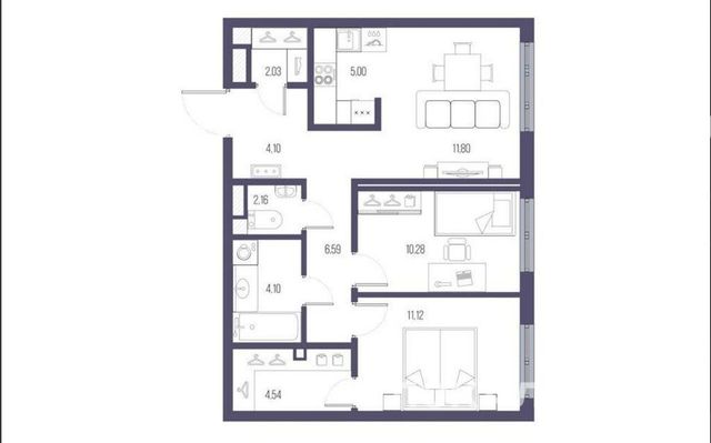 2-комнатная квартира: Санкт-Петербург, улица Стахановцев, 1 (61.9 м²)