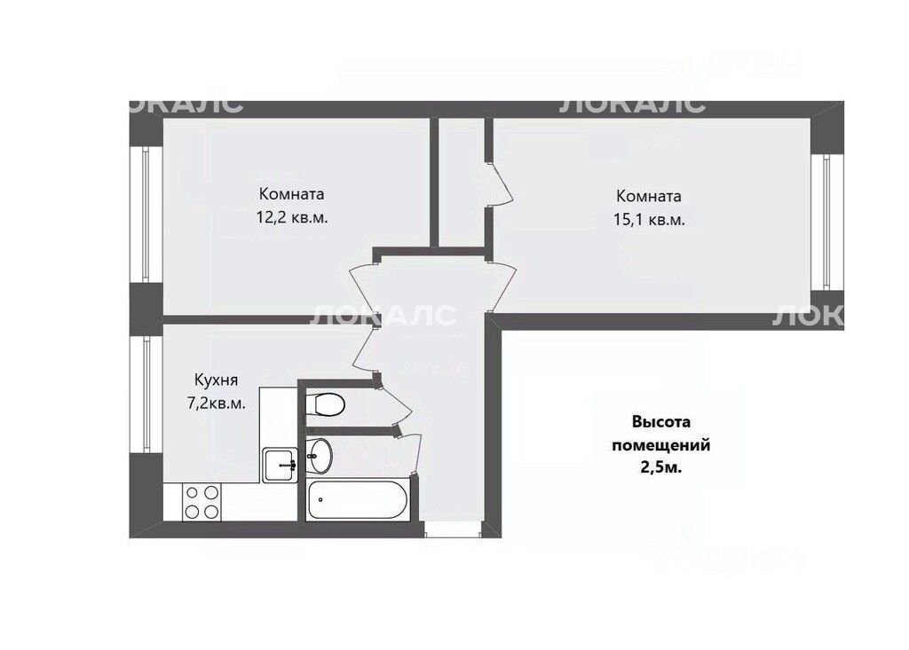 2-комнатная квартира: Санкт-Петербург, проспект Солидарности, 10к1 (44 м²)