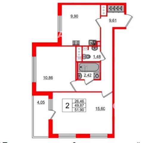 2-комнатная квартира: Санкт-Петербург, Ультрамариновая улица, 10 (52 м²)