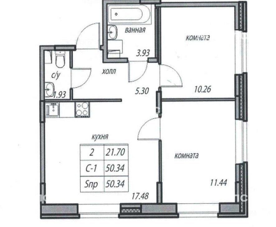 2-комнатная квартира: Санкт-Петербург, Юнтоловский проспект, 48к2 (49 м²)