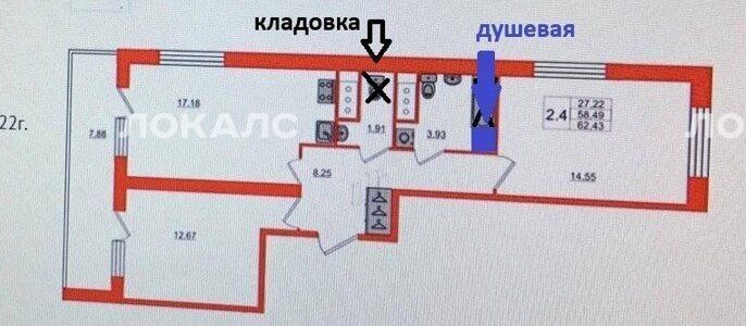 2-комнатная квартира: Санкт-Петербург, набережная Макарова, 58 (55 м²)