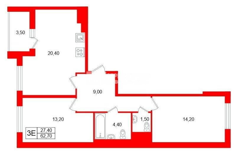 2-комнатная квартира: Санкт-Петербург, Уральская улица, 21 (62.7 м²)