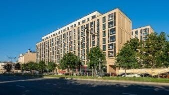 10 минут пешком до метро. Дом расположен у воды, рядом зелёные прогулочные зоны.