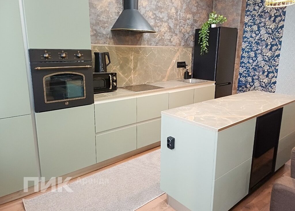 Квартира оснащена кухонным гарнитуром, всей необходимой мебелью и бытовой техникой. Есть:
