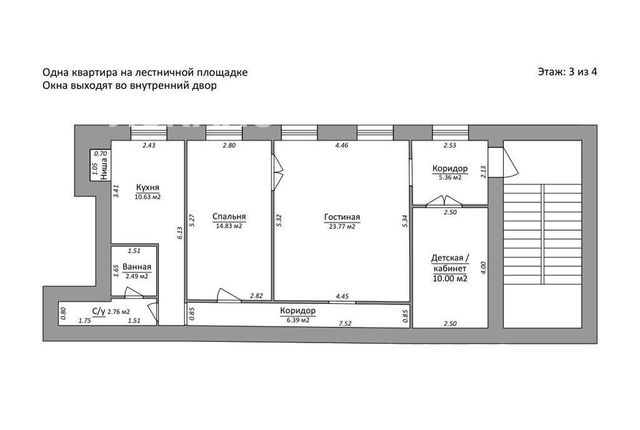 Квартира расположена на комфортном 3-м этаже 4-этажного дома в самом сердце исторического Петербурга. Окна выходят в центр тихого, закрытого и благоустроенного двора, где ведется видеонаблюдение и предусмотрена возможность парковки автомобиля.