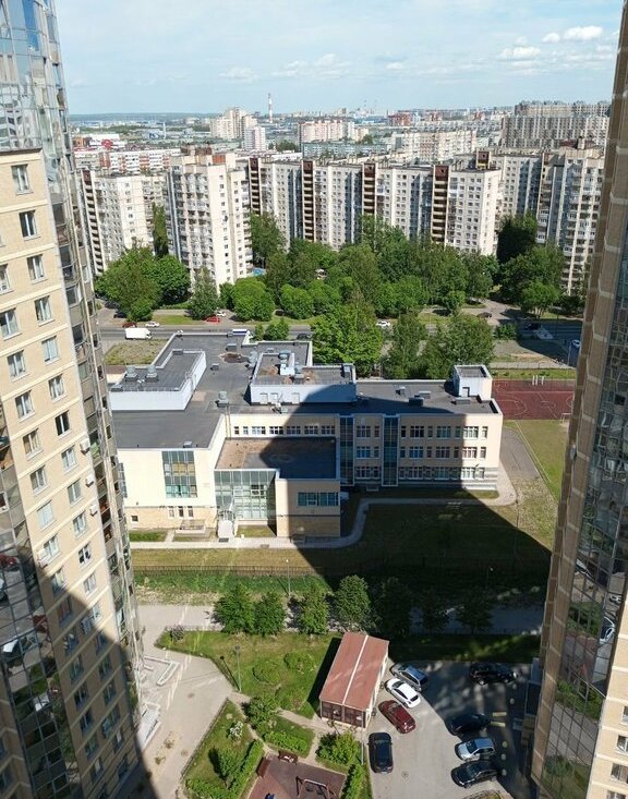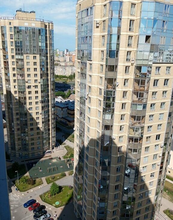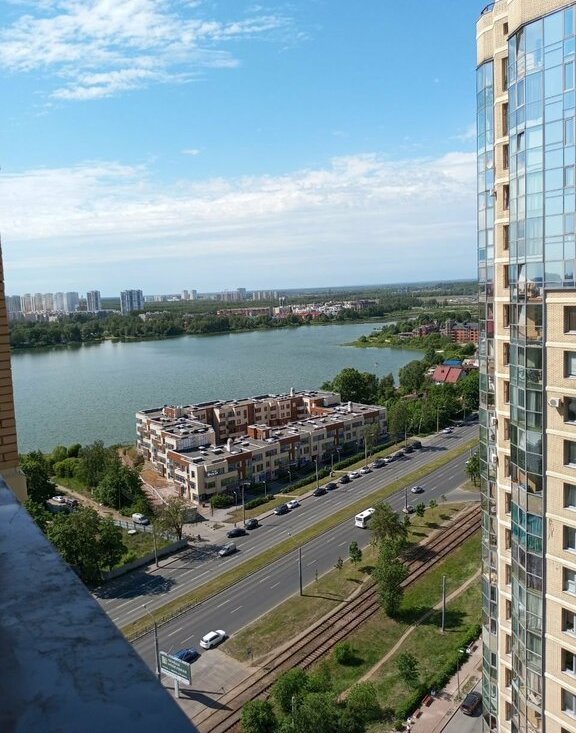 Панорамные окна в пол во всех комнатах дают много света и ощущение пространства. Высокий 24 этаж — тишина, хороший вид на район, не на шоссе.
