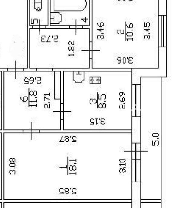 Общая площадь 52.6 кв. м. Две раздельные комнаты 18.10 кв.м. + 10.60 кв.м., кухня - 8.5 кв. м. Выход на балкон из комнаты. Балкон 5 кв.м. застеклен.