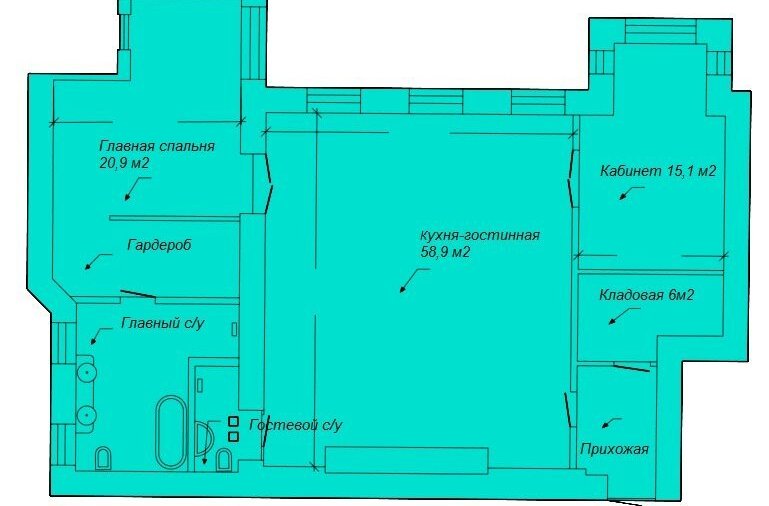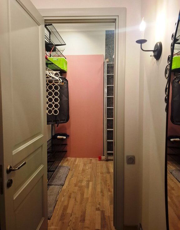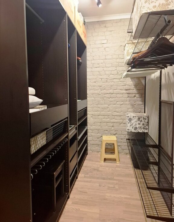 В квартире есть отдельный гостевой санузел, а так же большая кладовая 6 кв.м для хранения вещей. Высокие потолки, и большие распашные двери добавляют пространства.