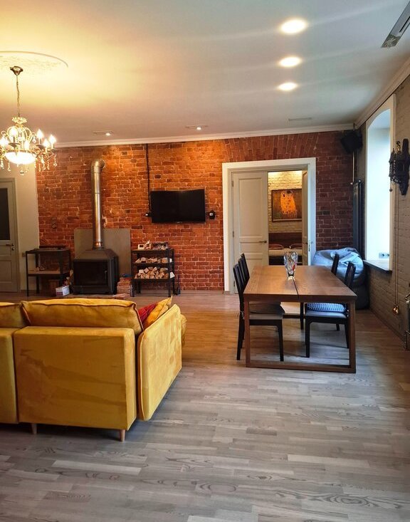 Выполнен капитальный ремонт: новая стяжка, все коммуникации, электропроводка, а так же современная вентиляционная система, теплый пол и реконструкция дымохода.