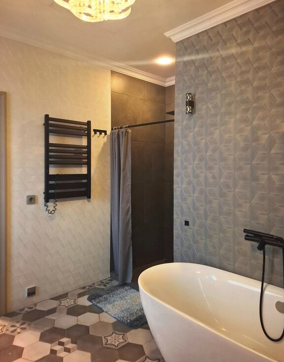 В квартире выполнен современный ремонт, который сочетает в себе современные нотки и застывшую классику старого фонда.