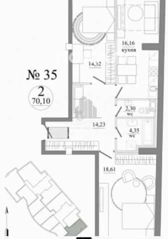 2-комнатная квартира: Санкт-Петербург, Ждановская улица, 10 (71 м²)