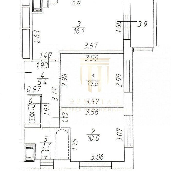 Общая площадь 47,1+лоджия 3,9 кв.м.