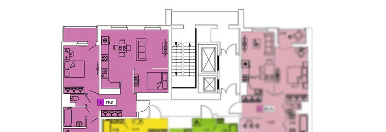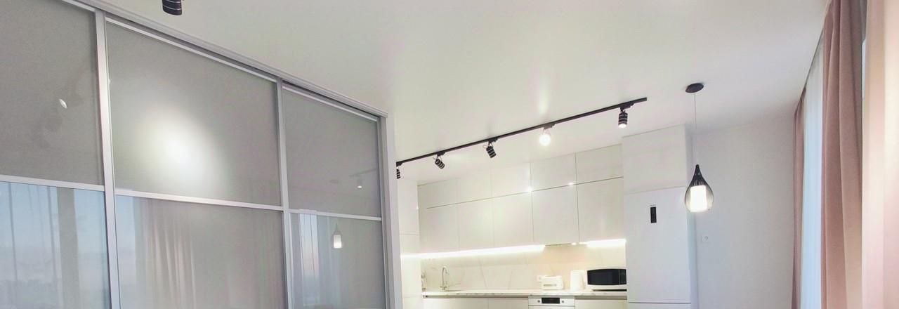 Квартира: 3-х комнатная евроформата площадью - 76,3 м². Высокие потолки - 2,74 м., создается ощущение простора и света. Расположена на 18 этаже 19-и этажного дома.