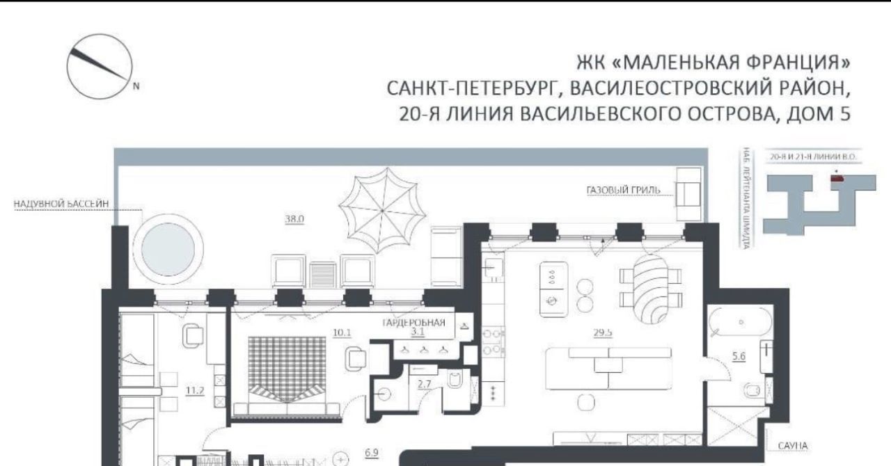 В продаже — редкий формат для центра Петербурга: квартира с большой приватной террасой 38,6 м² и собственной сауной. Идеальное решение для тех, кто ценит приватность, стиль и уровень.
