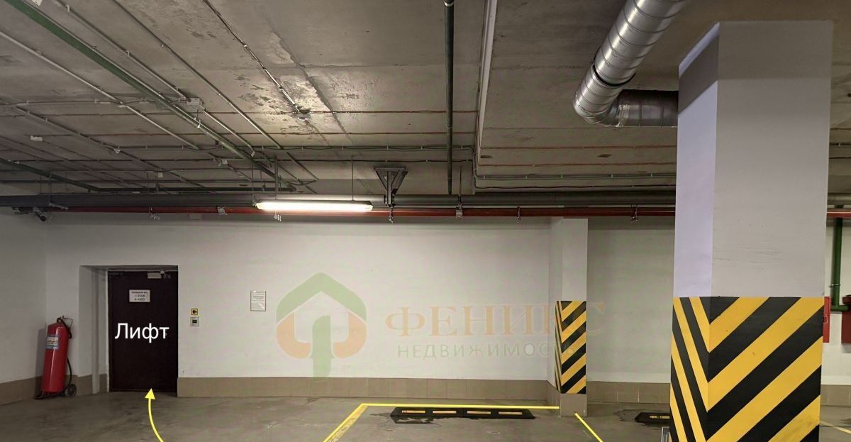 Подземный паркинг с широким местом у лифта.