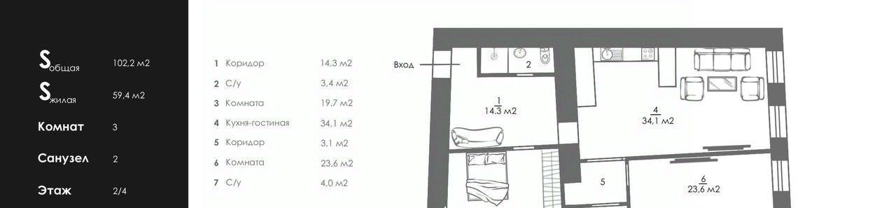 3-к кв. Санкт-Петербург 5-я Советская ул., 3/13 (102.0 м²)