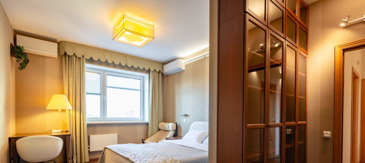 15 этаж. Комнаты изолированные. Большая ванная комната и второй санузел у входа. Две гардеробные. Лоджия. Окна в тихий двор. Двойные стеклопакеты со встроенными жалюзи. Установлена мультисплит система кондиционирования Fujitsu. Панорамный вид с башней Газпрома.