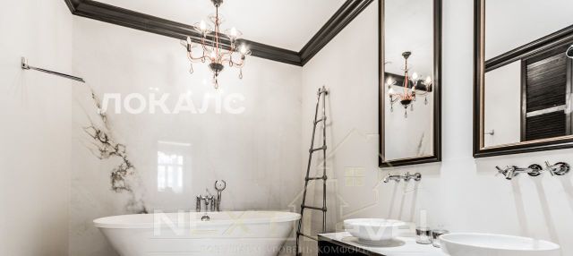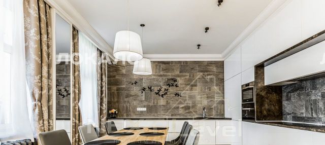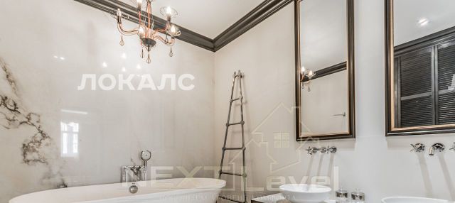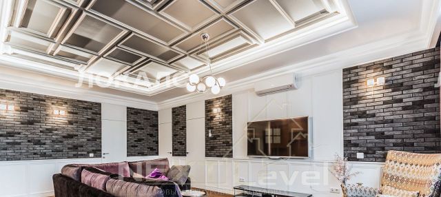Отделка выполнена из дорогих и высококачественных материалов (французский паркет, итальянская плитка), чугунные резные радиаторы, итальянские светильники. Полностью меблирована и укомплектована необходимой бытовой техникой.