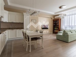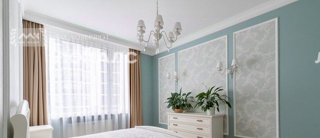 Общая площадь квартиры 90м2. Спальня с гардеробной, детская, кухня-гостиная, 2 с/у, холл. Окна выходят на две стороны. В квартире выполнен качественный ремонт с применением натуральных материалов. Оснащена всей необходимой бытовой техникой. Кондиционеры. Большая застекленная лоджия.
