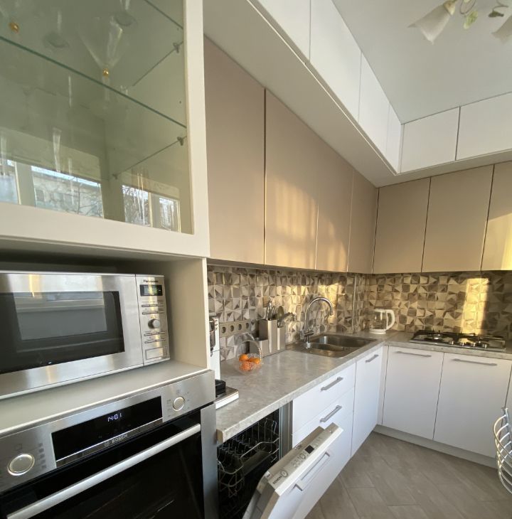 • Новая кухня с премиальной встроенной техникой: посудомоечная машина Siemens, духовой шкаф Bosch, варочная панель Korting.