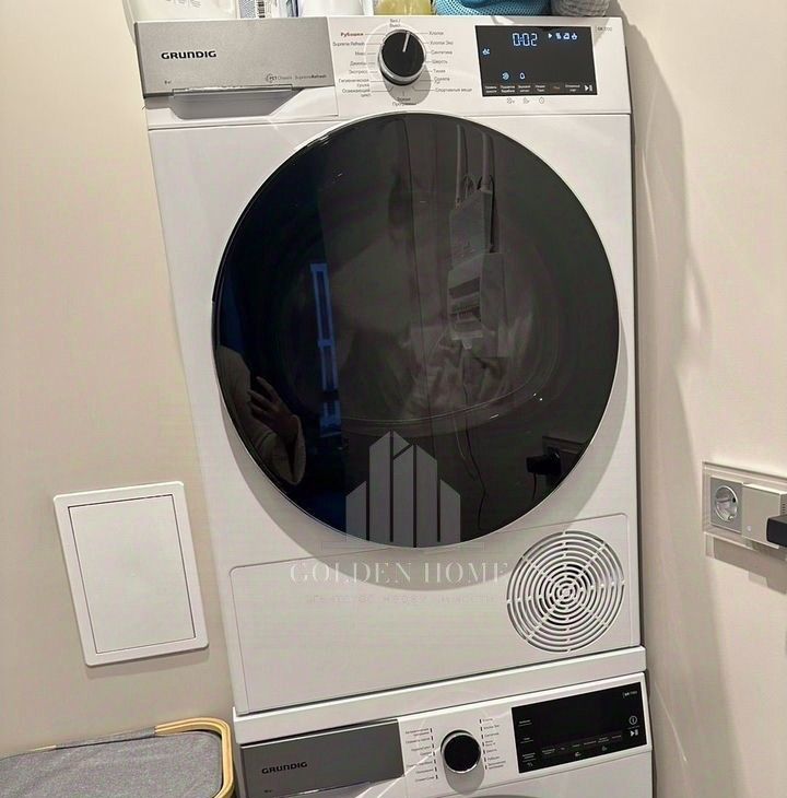 Есть два cан узла, oдин с вaннoй, другoй с душевой кабинoй, балкон и поcтиpочная, гдe находятся стиральная и сушильные машины. Квартира очень светлая, окна выходят на две стороны. В трех комнатах установлены кондиционеры, везде теплые полы. Есть вся необходимая для проживания техника, и даже больше: робот пылесос, Дайсон вертикальный пылесос, соковыжималки, кухонный комбайн, посудомоечная, духовой шкаф, чайник и тд. Все необходимое на кухне: чайник, посуда, приборы и тд.